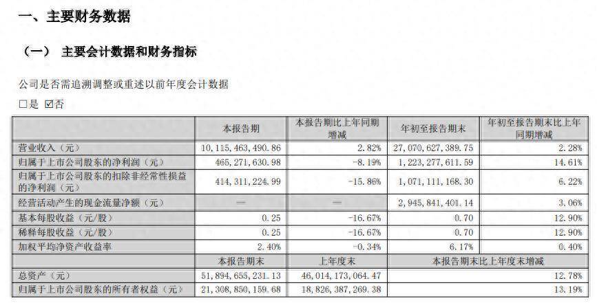 东山精密三季报主要财务数据其中第三季度,公司营业收入为101.15亿元,同比上升2.82%;归母净利润为4.65亿元,同比下降8.19%;扣非归母净利润为4.14亿元,同比下降15.86%。