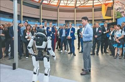 近日,各国企业家在上海徐汇滨江近距离体验人工智能前沿技术和创新产品。